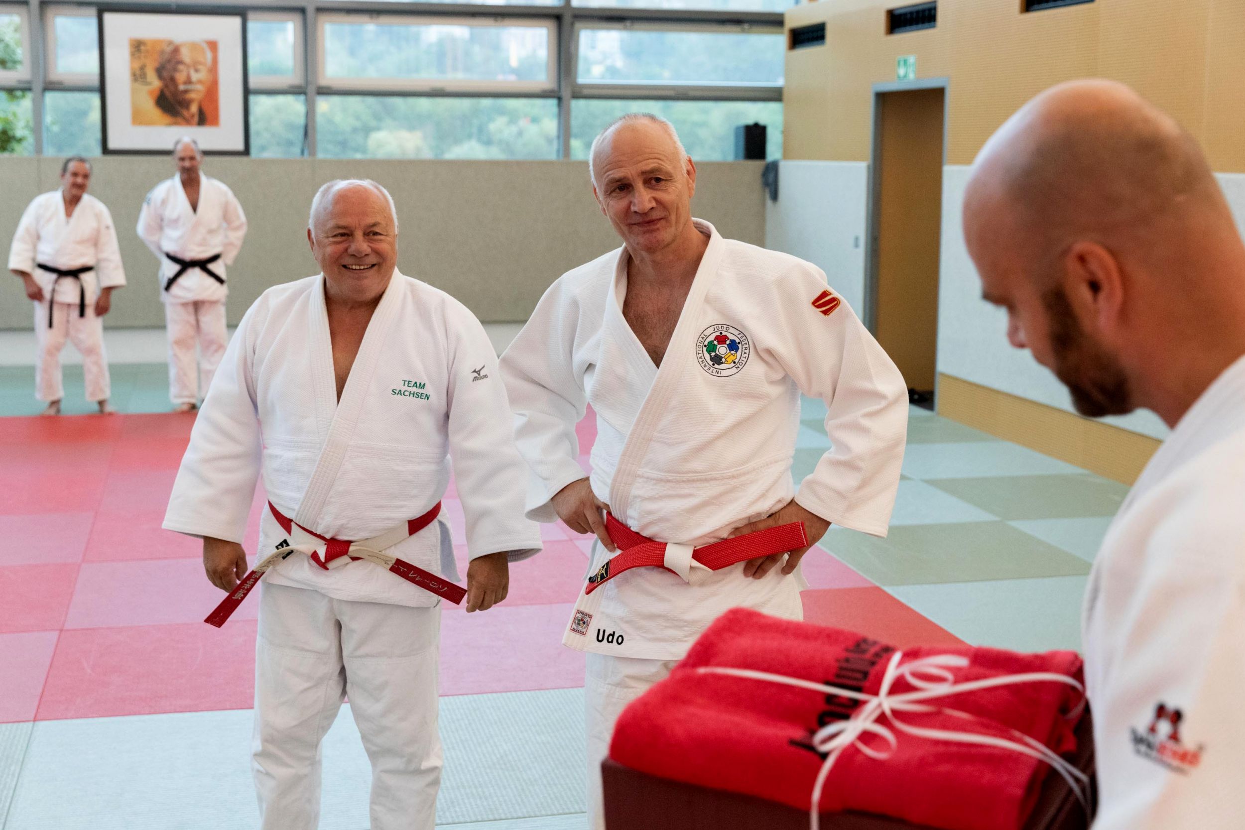 Kein geringerer als Deutschlands erfolgreichster Judoka, der gebürtige Leipziger Udo „Quelle“ Quellmalz (7.Dan)  gab uns die Ehre, mit ihm zu trainieren. Auf kurzweilige und sympathische Art und Weise vermittelte der ehemalige Olympiasieger und 2-fache Weltmeister seine zahlreichen Erfahrungen und Maximen. Einer vielseitigen, judospezifischen Erwärmung mit viel Spaß und Bewegung folgte ein Technikteil, in dem die jungen Sportler wertvolle Tipps und Tricks für eine erfolgreiche Anwendung von Wurftechniken aus berufenem Munde erhielten. Besonders wertvoll für die Teilnehmer waren auch seine Erfahrungen im Umgang mit Verletzungen und auch Niederlagen.